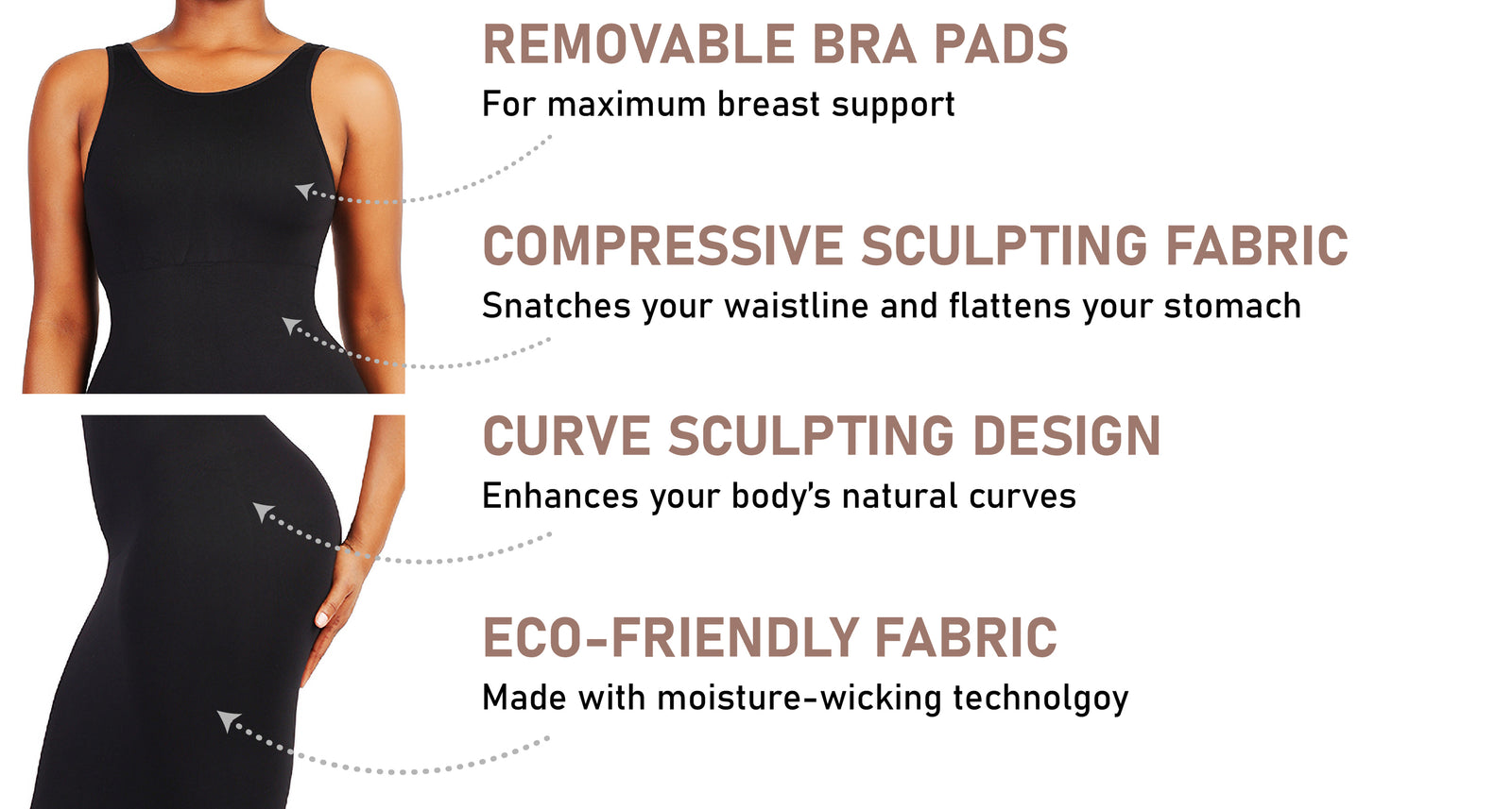 Crafted with seamless sculpting technology to accentuate all your natural curves. This High Neck Sleeveless Shaping Dress features super eco-friendly soft fabric with 360 degree sculpting compression technology. Designed for weekend getaways, late night parties, and work days in the office.