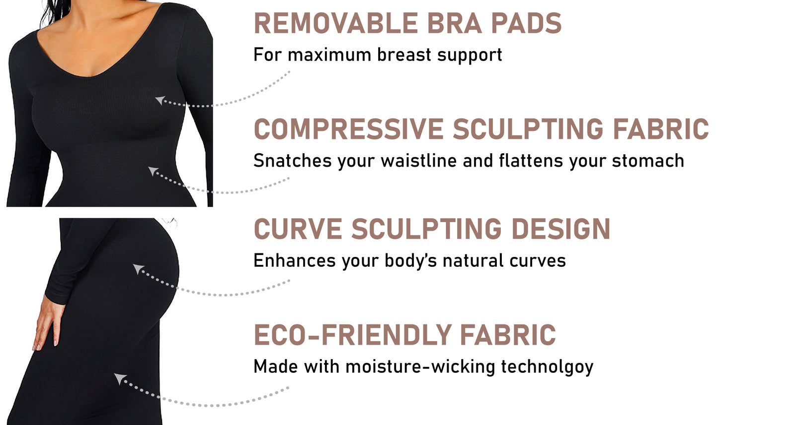 • Long sleeve style with 360 degree sculpting technology.