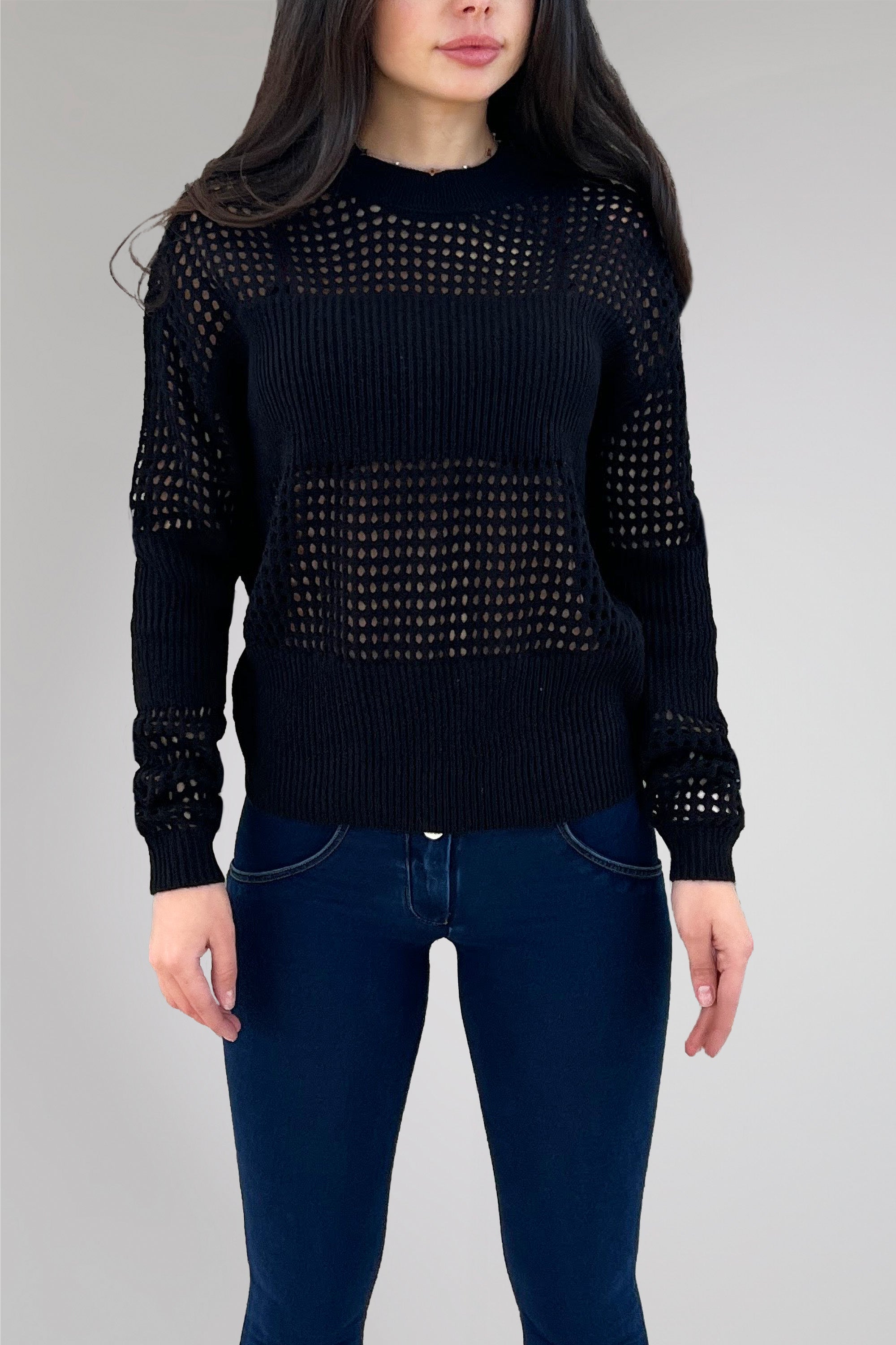 Introducing our Crew Neck Long Sleeve Sweater with Crochet Detailing – the epitome of cozy elegance. This long-sleeved beauty seamlessly combines the timeless crew neck style with intricate crochet detailing, creating a garment that exudes sophistication and warmth. Wrap yourself in the luxurious softness of the fabric, designed for all-day comfort and enduring style.