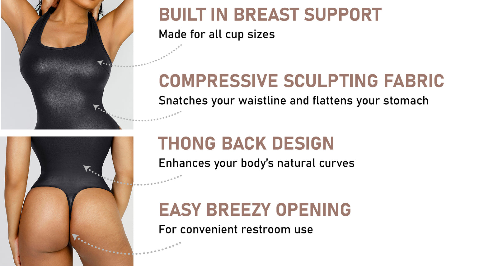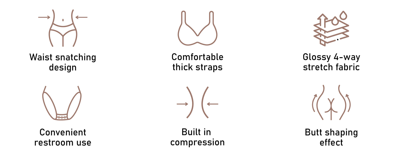 • Built-in compressive elastic fabric for sculpting perfection that snatches your waistline and flattens your stomach.