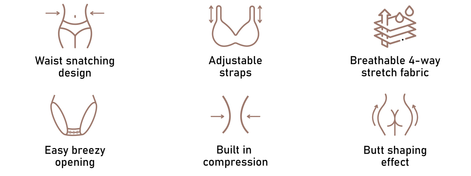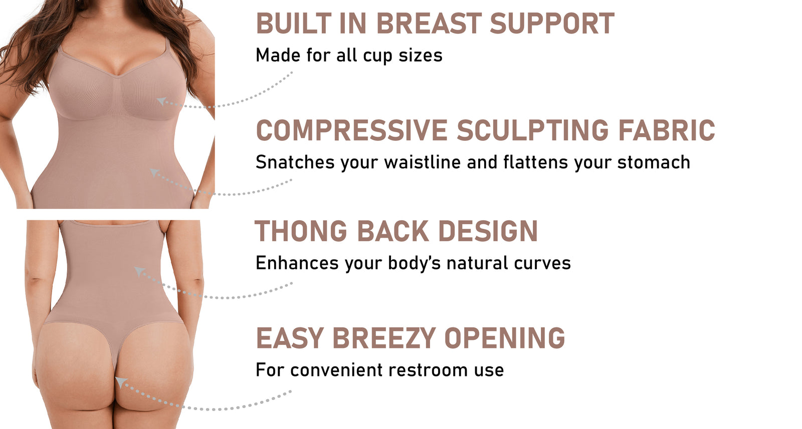 • Built-in compressive fabric for sculpting perfection that snatches your waistline, flattens your stomach, and accentuates your booty.