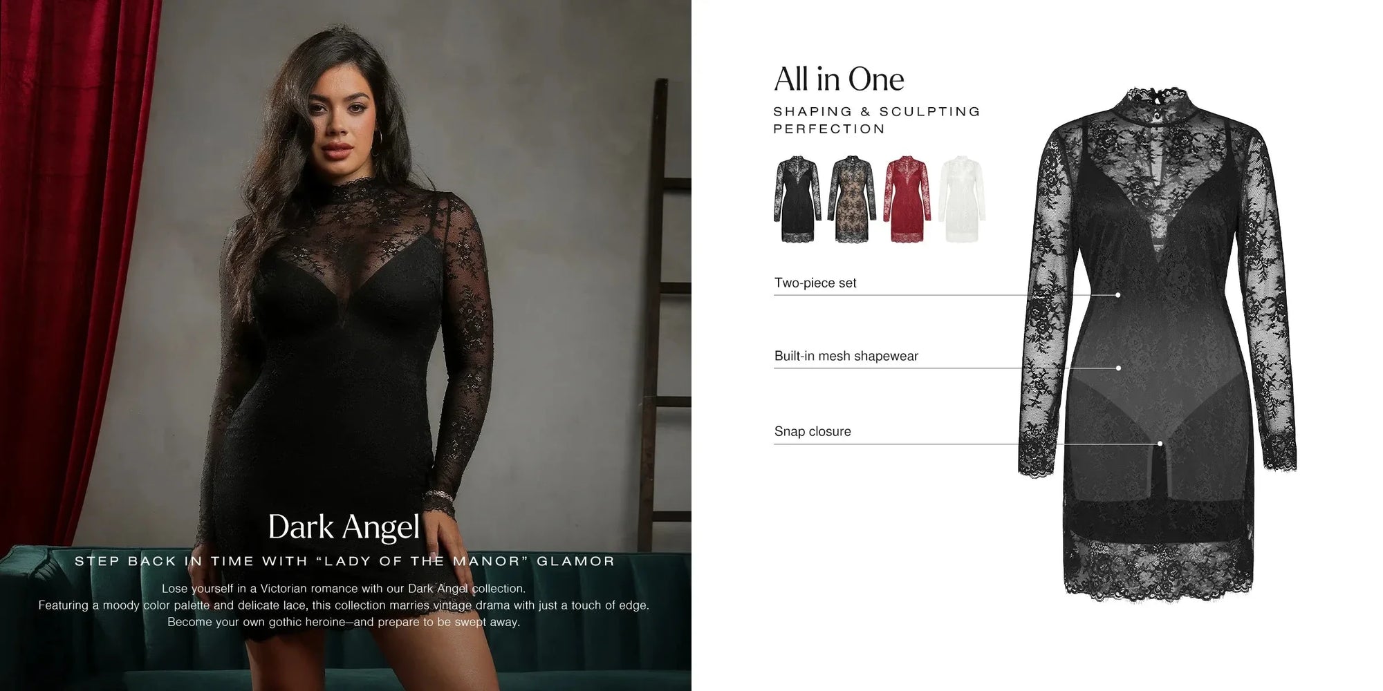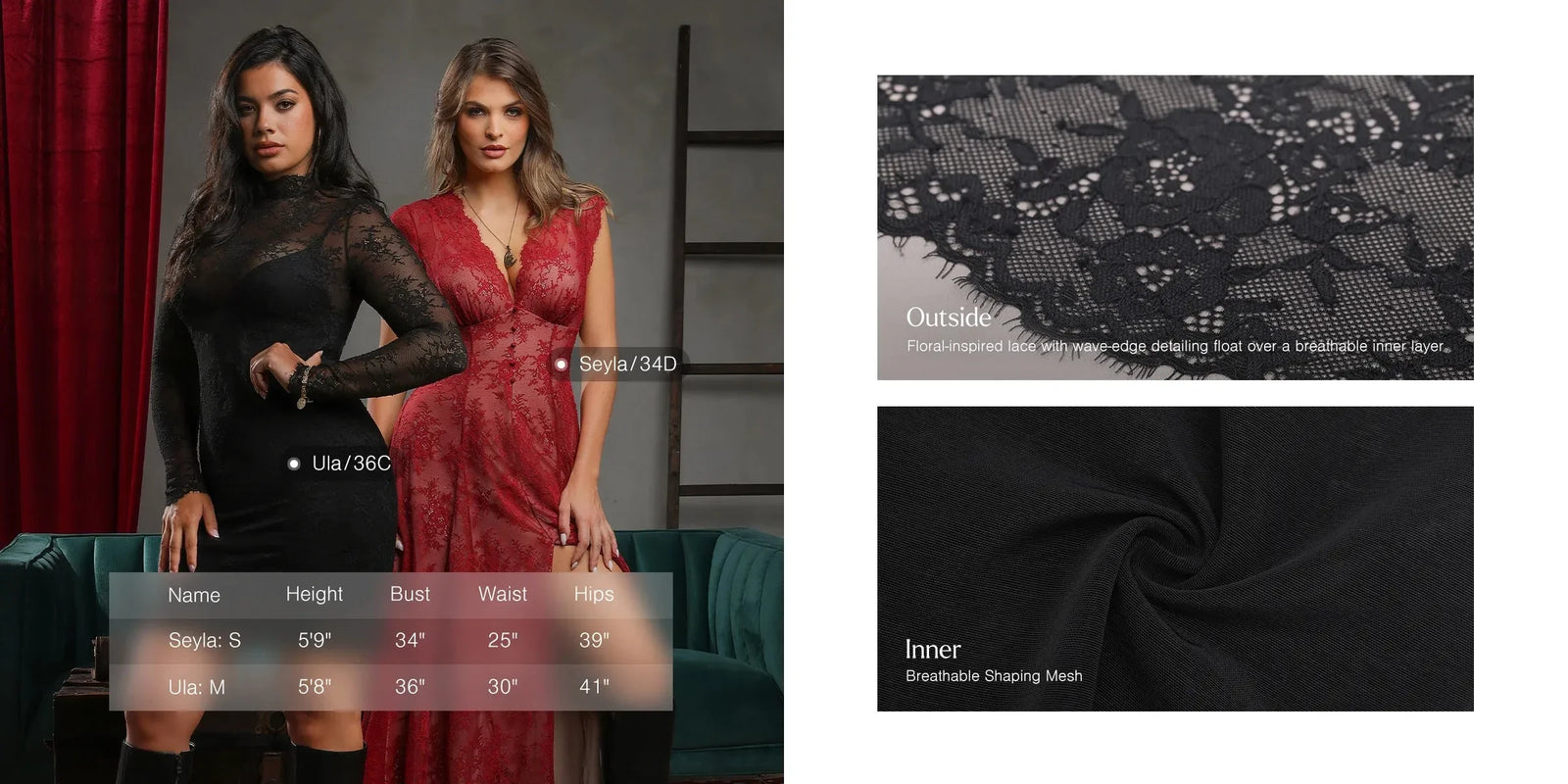 This innovative two-piece set combines a sheer lace overlay with a built-in shapewear dress to replace your bra, underwear and shapewear in one elegant solution, perfect for everything from resort wear to evening parties.