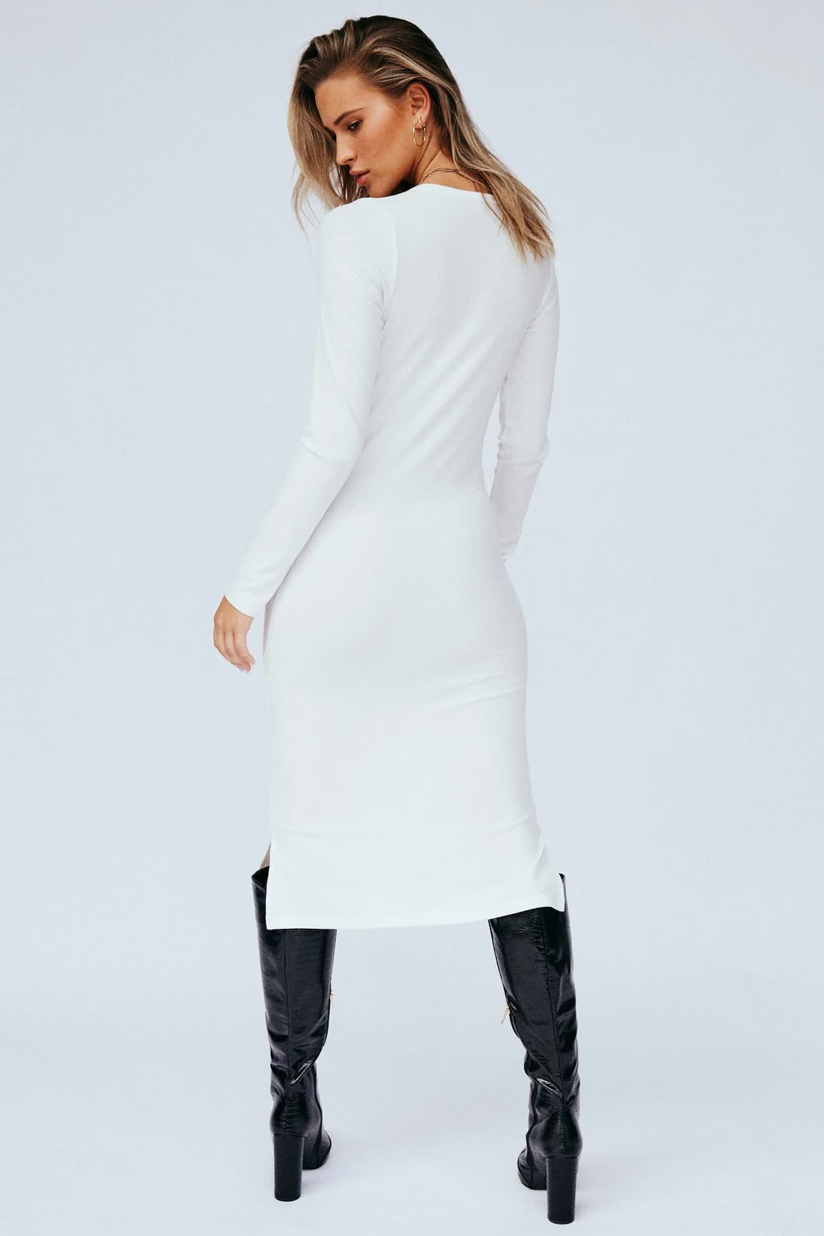 Elroy Dress - Long Sleeve V Neckline - White