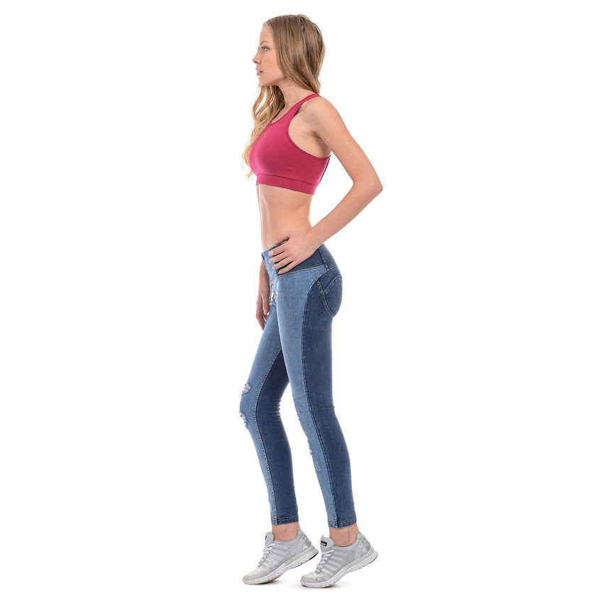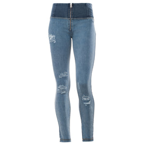 Perfect for the season, this new denim knit with white stitching has been rinsed and curated to give you a one of a kind hand made distressed effect. Freddy uses it's patented WR.UP technology and special seaming to shape and push-up.