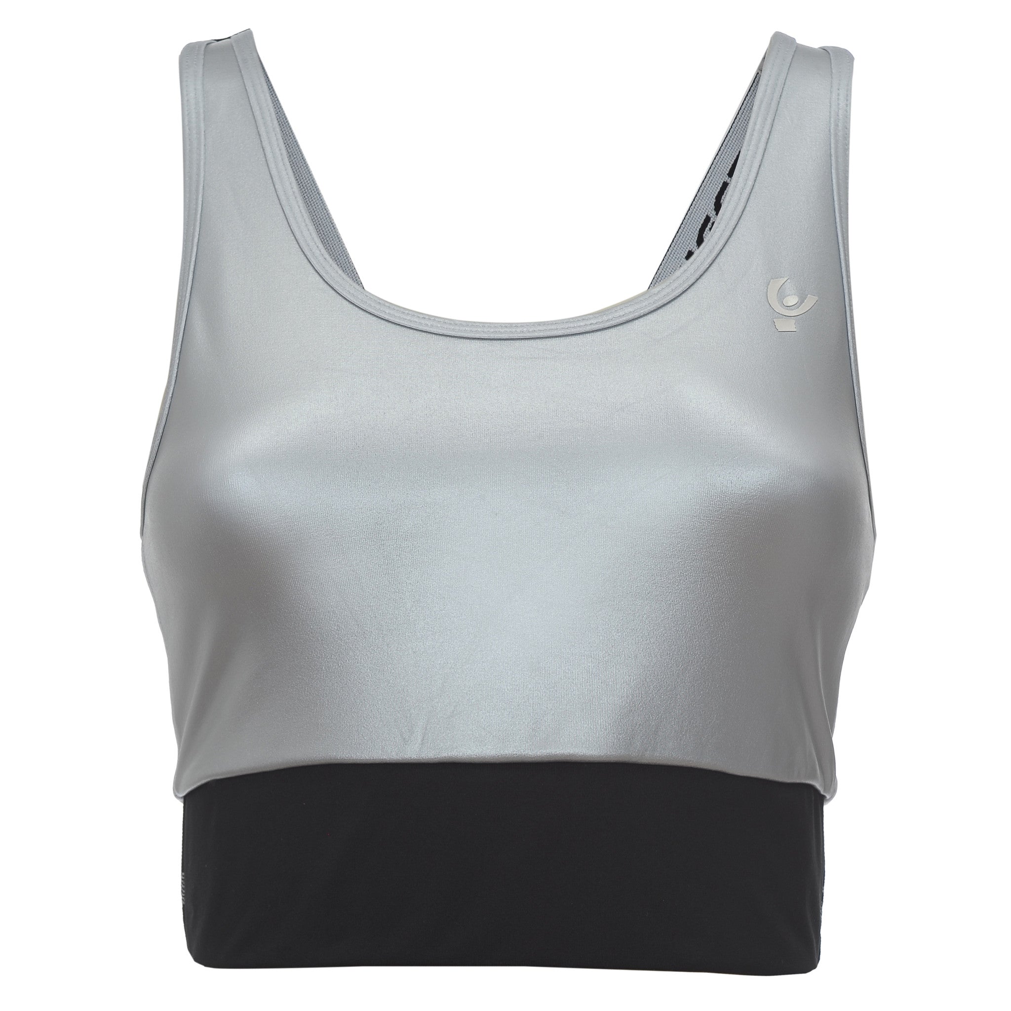 Stay warm, dry and comfortable in this sports bra. Made with heavy DIWO, you are sweat proof. Finished with a logo racerback and a thick band, this pink and grey sports bra is just the perfect touch of femininity