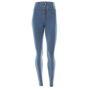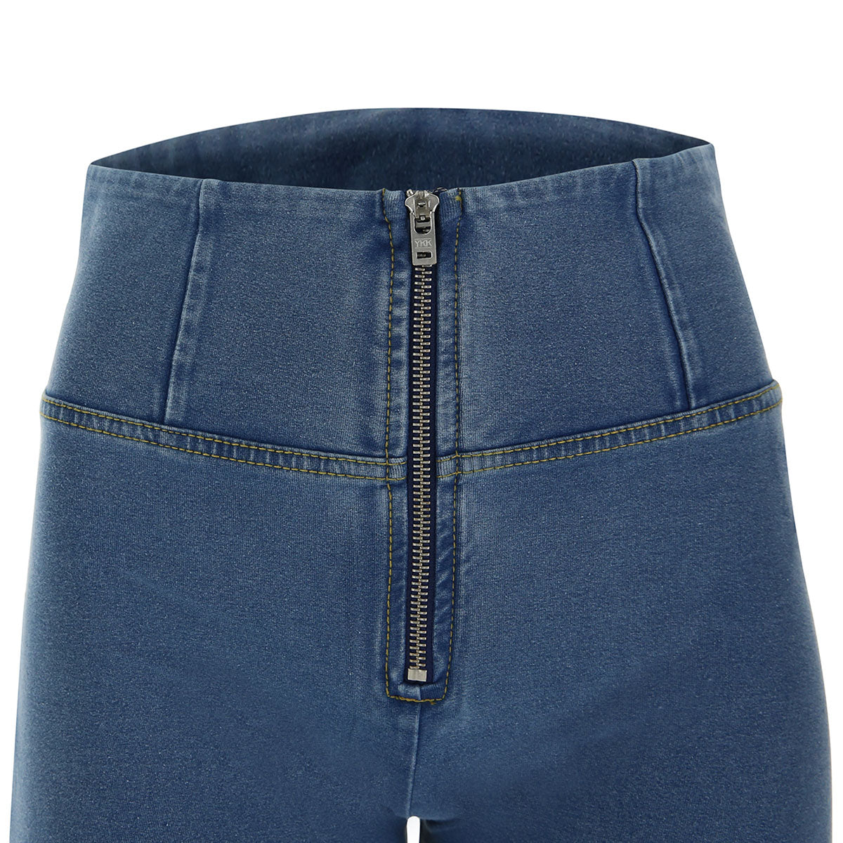 Our high rise knit denim effect has just arrived in our fave Indigo rinse with white stitching. Freddy's most popular wash is now available in a high rise.This Italian designed pant offers the patented WR.UP technology that enhances a woman's femininity through special seams, a silicone membrane and striking cuts to support and shape for a perfect fit. A fashion must have when styled with a pair of stilettos or ideal for lounging with your girls.