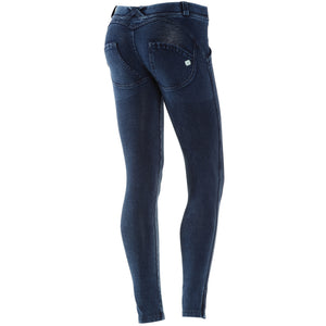 By popular demand and perfect for the new season the zip ankle length skinny is here. The 7/8 option is a great fit for those ladies that have a shorter leg length and want to avoid hemming their pan tor simply want a fashion silhouette that hits at the ankle and elongates the body without cutting it into pieces. The Freddy WR.UP® jean uses the same technology of silicone and special seaming to shape and push-up. The dark indigo wash is a timeless addition to any wardrobe.