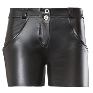 Just In time for the season comes the Freddy WR.UP jersey short that looks like leather. This new creation from Freddy is a sophisticated and sexy addition to any wardrobe. The Freddy WR.UP short uses the same technology of silicone and special seaming to shape and push-up.