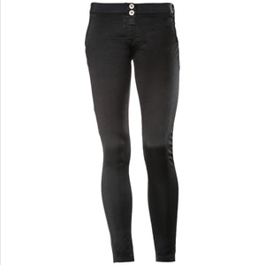 The newest creation from Freddy mixes satin detailing in the front with its signature WR.UP fabrication in the back. This Italian designed pant offers the same patented WR.UP technology with special seams, a silicone membrane and striking cuts to support and shape for a perfect fit.
