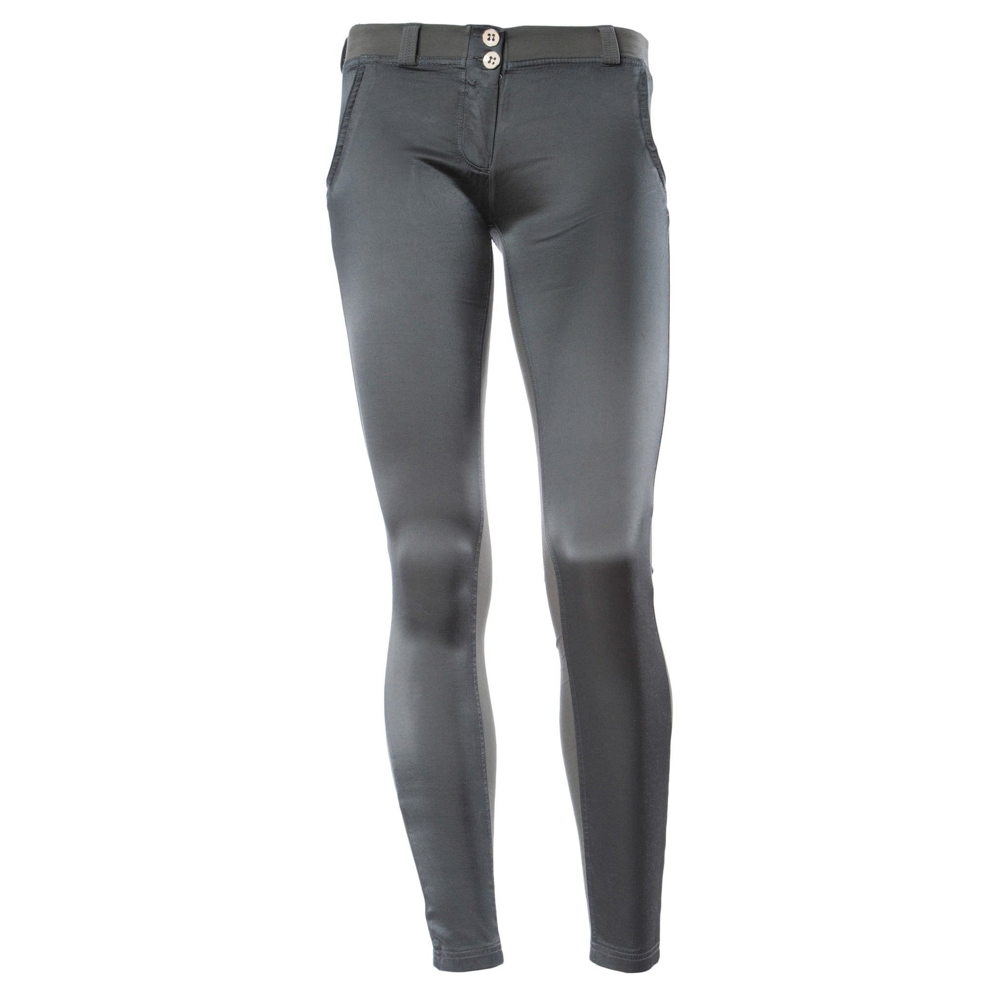 The newest creation from Freddy mixes satin detailing in the front with its signature WR.UP fabrication in the back. This Italian designed pant offers the same patented WR.UP technology with special seams, a silicone membrane and striking cuts to support and shape for a perfect fit.