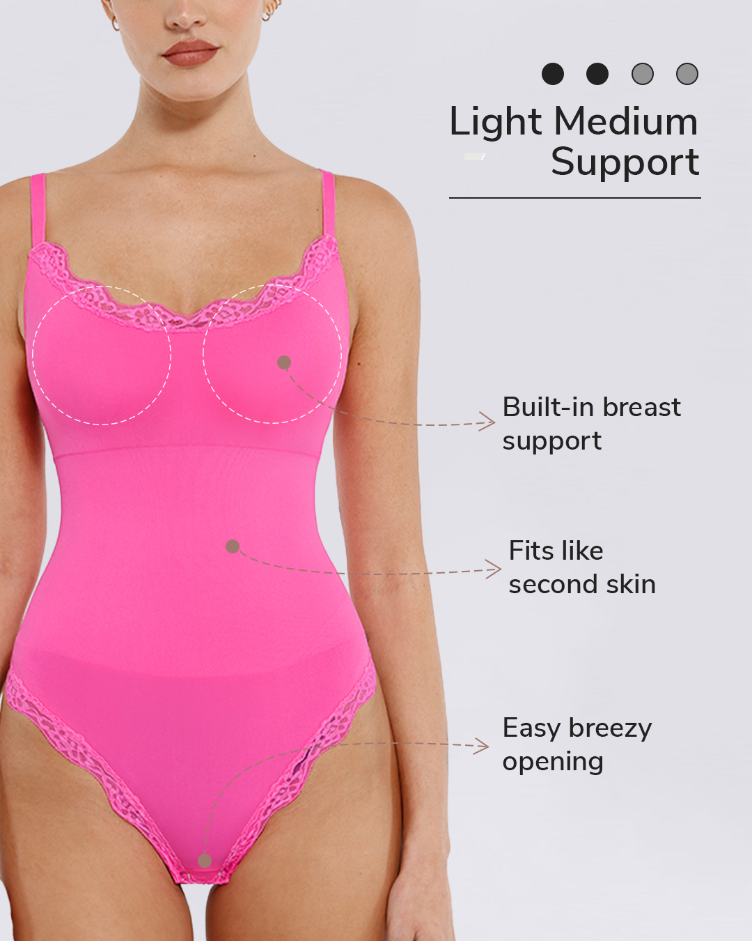 Effortlessly blending elegance and functionality, our Lace Cami Thong Bodysuit is the ultimate summer shapewear essential. Designed with seamless weaving technology, this bodysuit is crafted from ultra-soft, high-elastic yarn for a breathable, skin-friendly, and comfortable fit that moves with you.