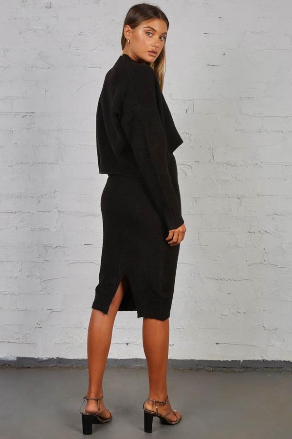 This high-waisted pencil skirt features stylish back slit detailing and is made from a fuzzy knit wool that will have you feel cute and cozy all day. The straight silhouette and midi length makes this skirt so versatile. Wear it to the office or to meet a friend at the local cafe. Complete the look with the Late Lunch Sweater.