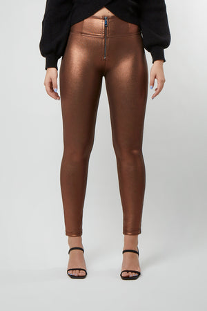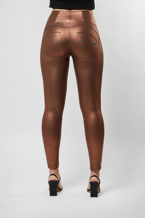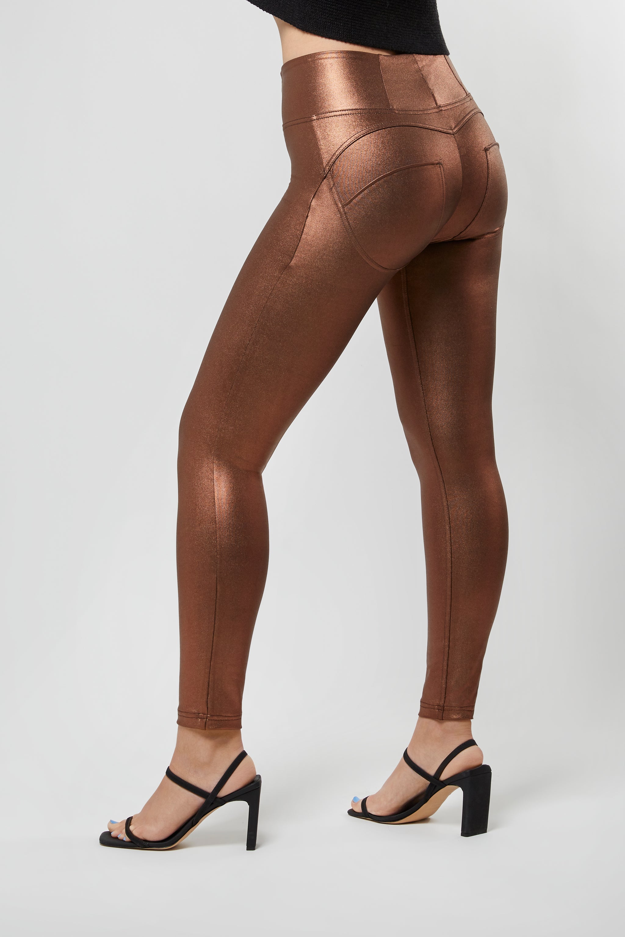 These ultra cool high rise pants are made from premium high quality fabric that is coated for that trendy metallic shine. Combined with the patented WR.UP® technology, this pant enhances and defines your curves, giving you that touch of elegance and edge. The exuberant style of these trousers is just right for lighting up the party or a cool day in the city. Pair these ankle pants with a pair of heels and turn heads wherever you go.