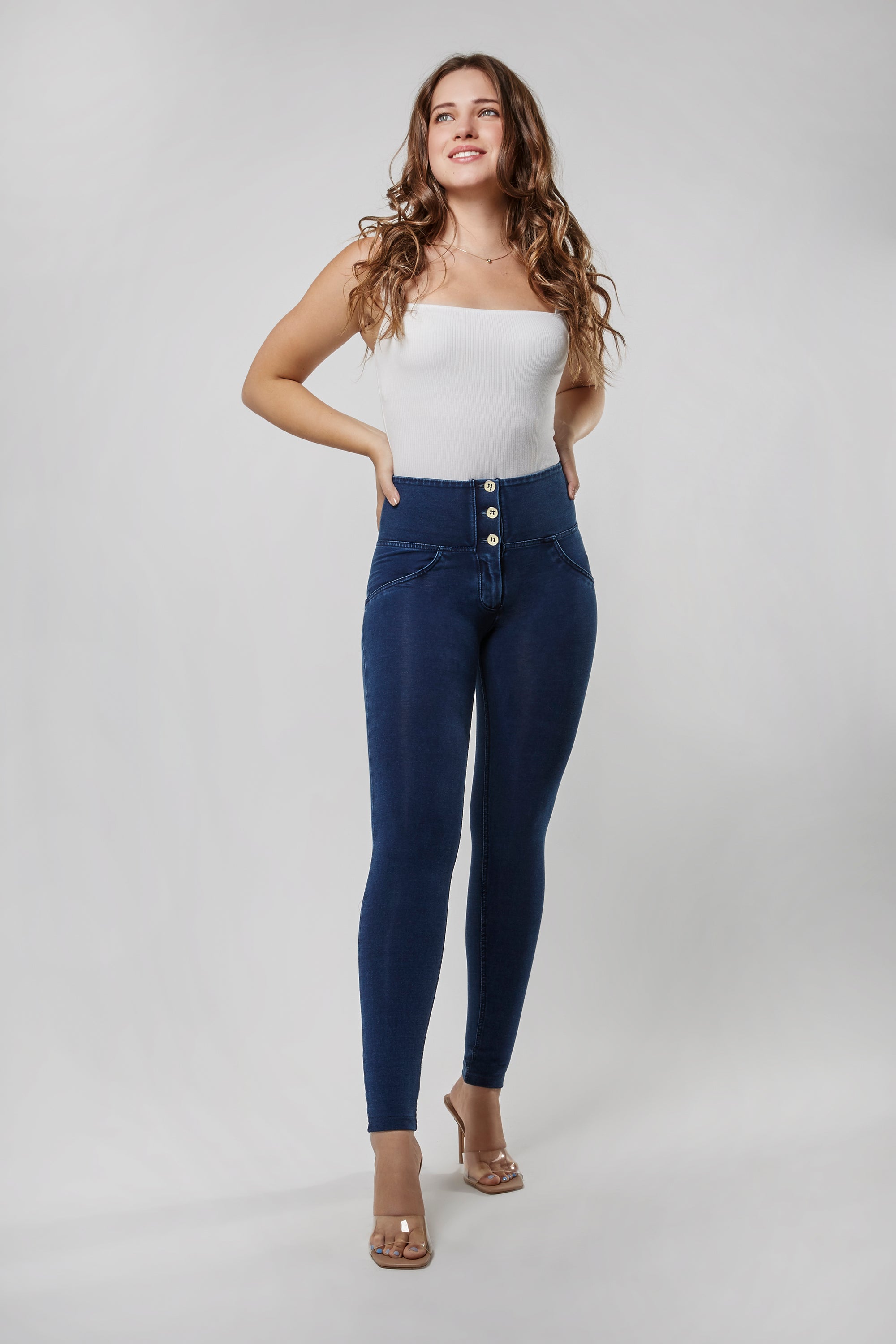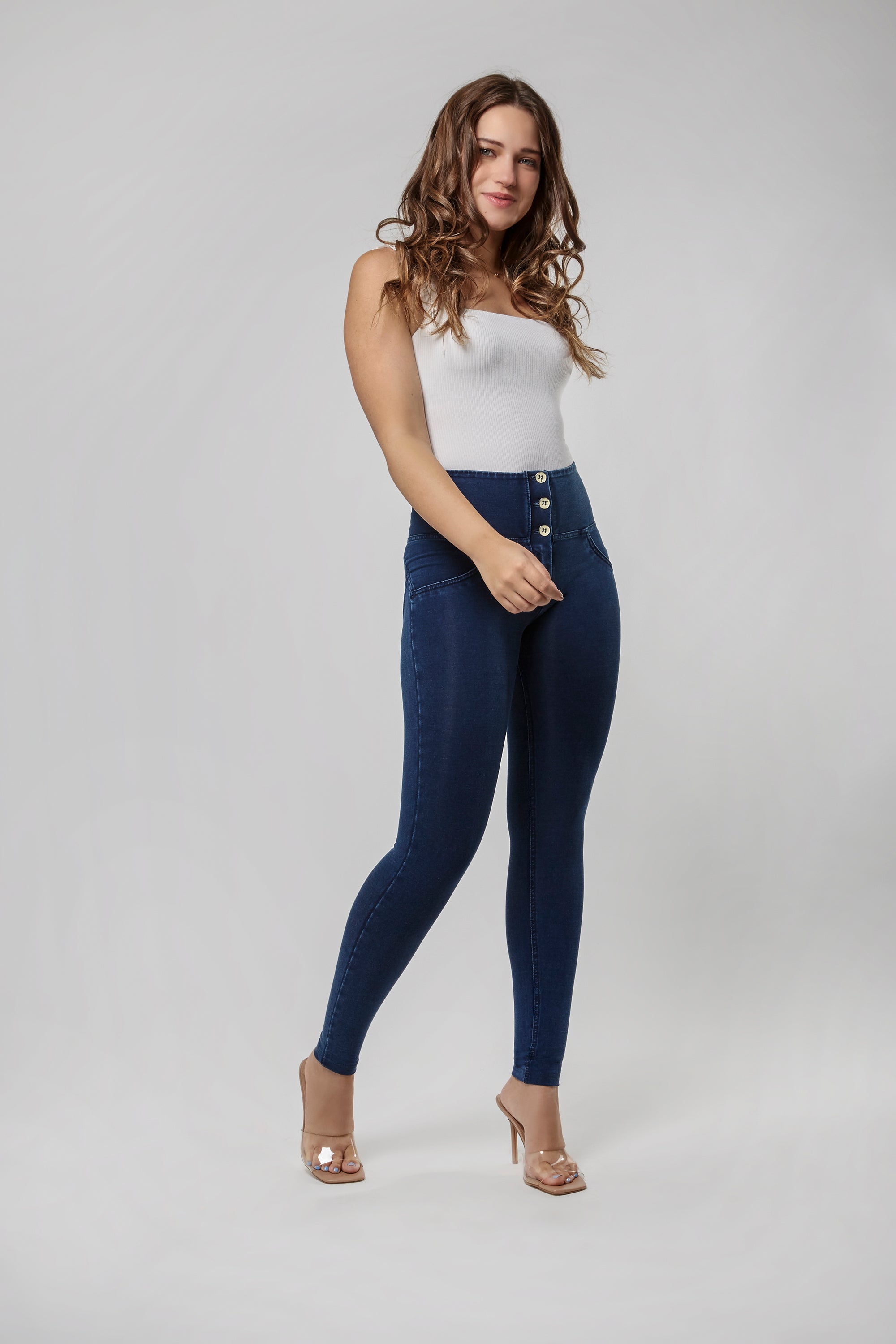 You love our 3 button styling but want a higher rise fit? Well guess what, you have it! This sought after super skinny style features a sexy high waist to flatter your curves, 3 cute buttons to fasten in front, and our famous patented WR.UP® technology that shapes and lifts the booty for the perfect silhouette. You’ll be flaunting these sexy denim pants wherever you go! Pair with a crop top to show off the cute buttons and turn heads!