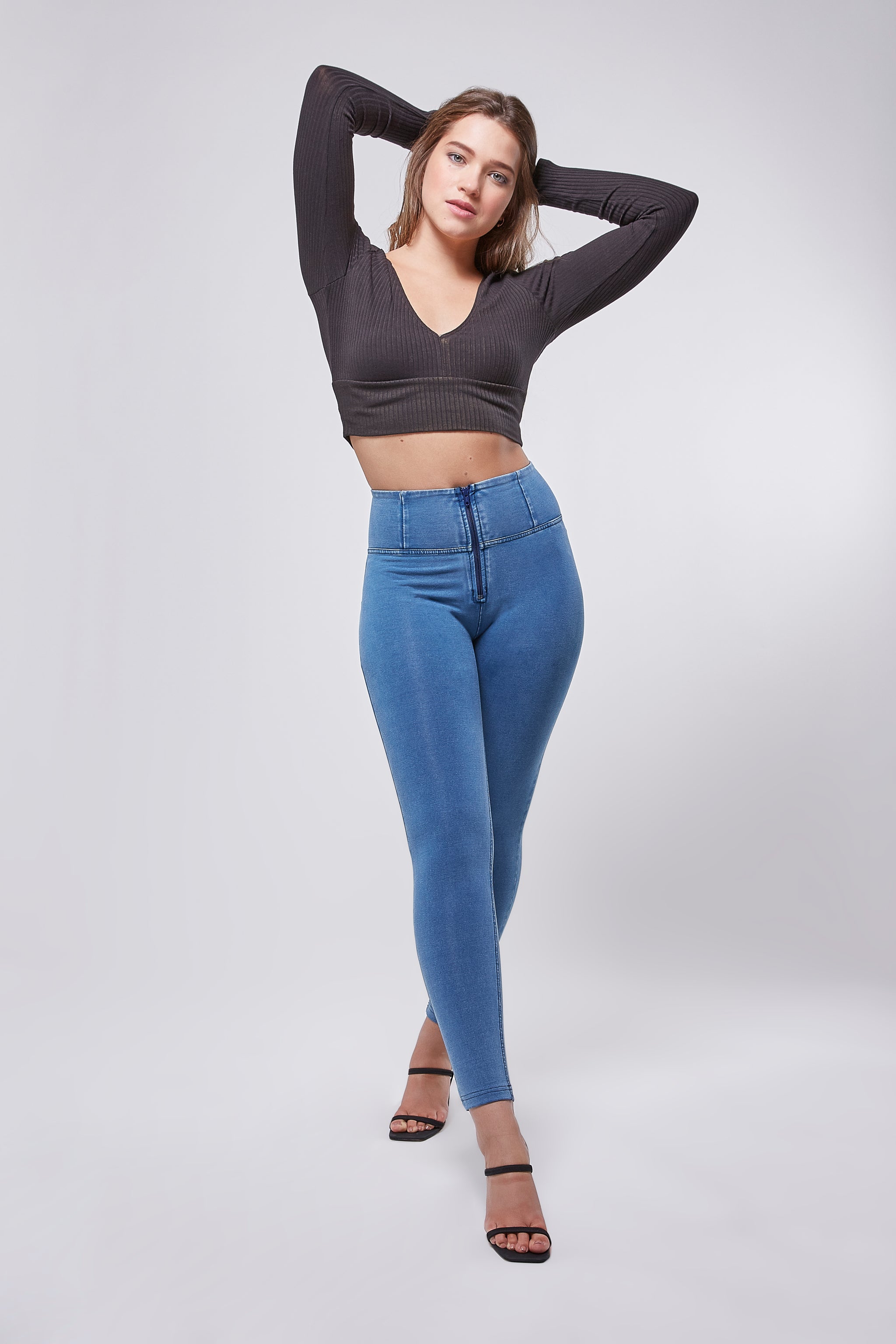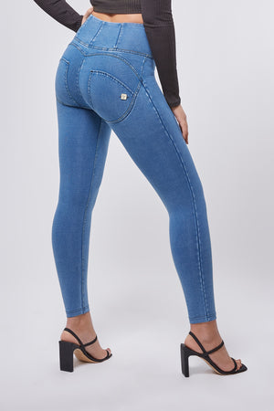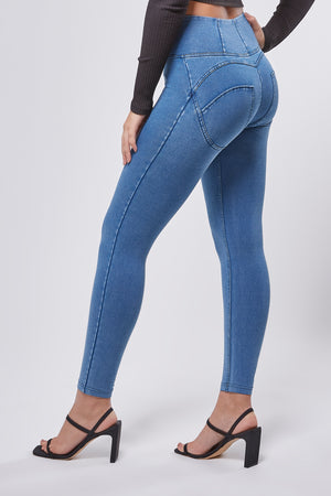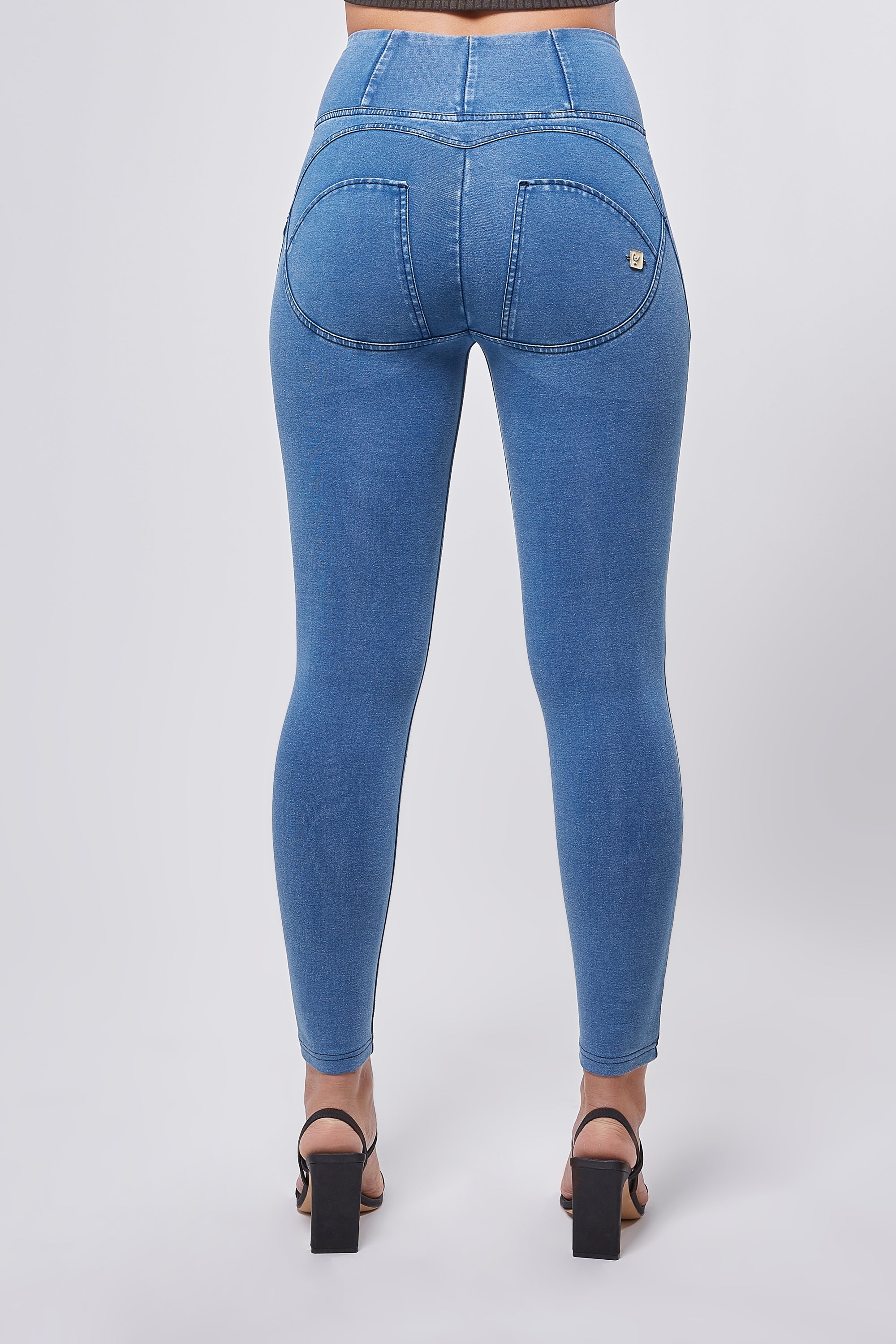 Our ankle length, high rise and denim effect with tone on tone zipper has just arrived in our fave medium rinse .This Italian designed pant offers the patented WR.UP technology that enhances a woman's femininity through special seams, a silicone membrane and striking cuts to support and shape for a perfect fit.